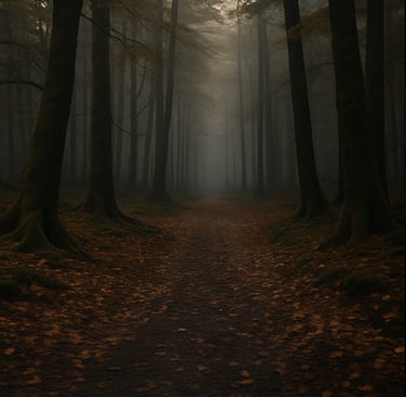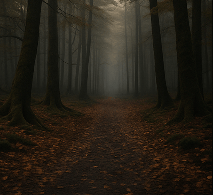 Un pas lent sur un chemin de feuilles sèches.