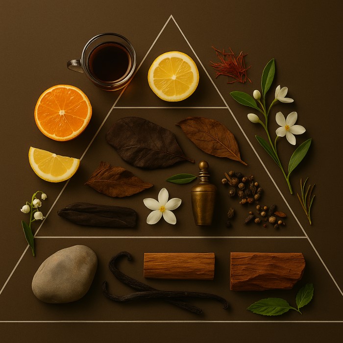 Cœur : Cuir, Tabac, Jasmin, Encens, Épices