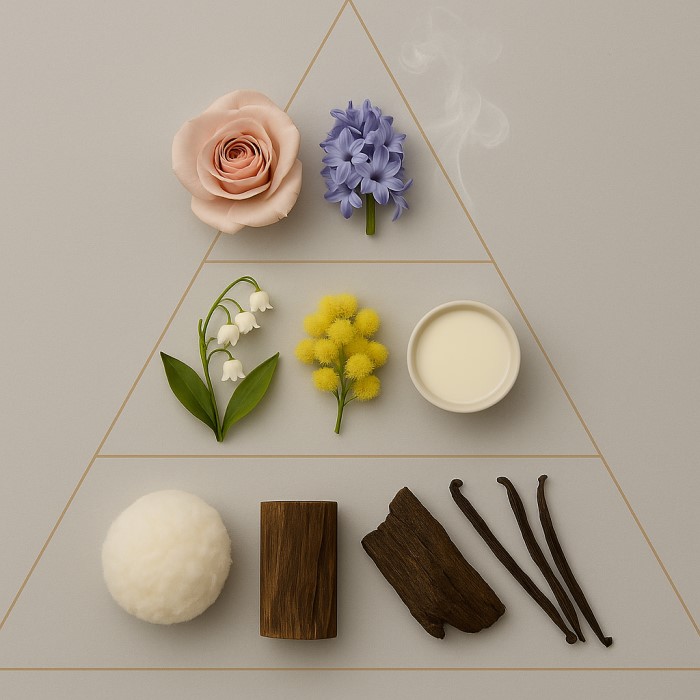 Au cœur, le muguet rayonne, porté par la fleur de cassie et une touche lactée inattendue qui lui donne texture et corps. Puis vient le fond : une matière musquée, boisée, un souffle animal très doux qui ancre cette lumière dans la chair.