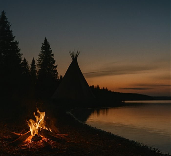 Un feu entouré de silence, un rite porté par la nuit.